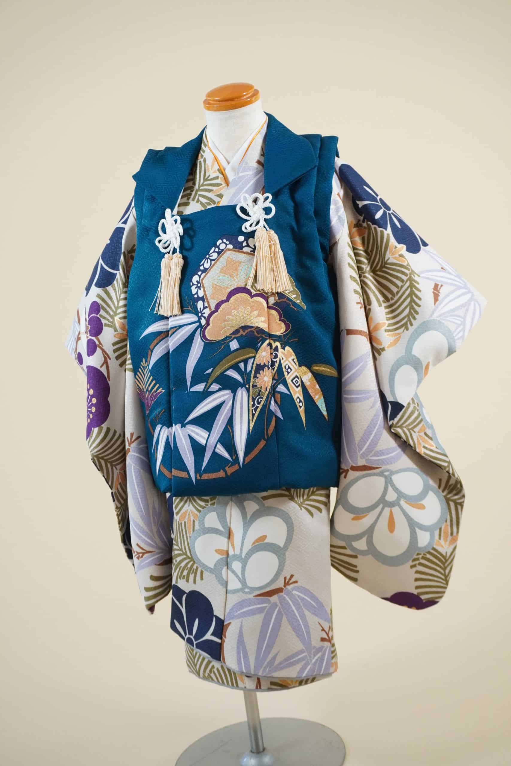 3歳男の子 JS421 被布 緑紺松竹梅