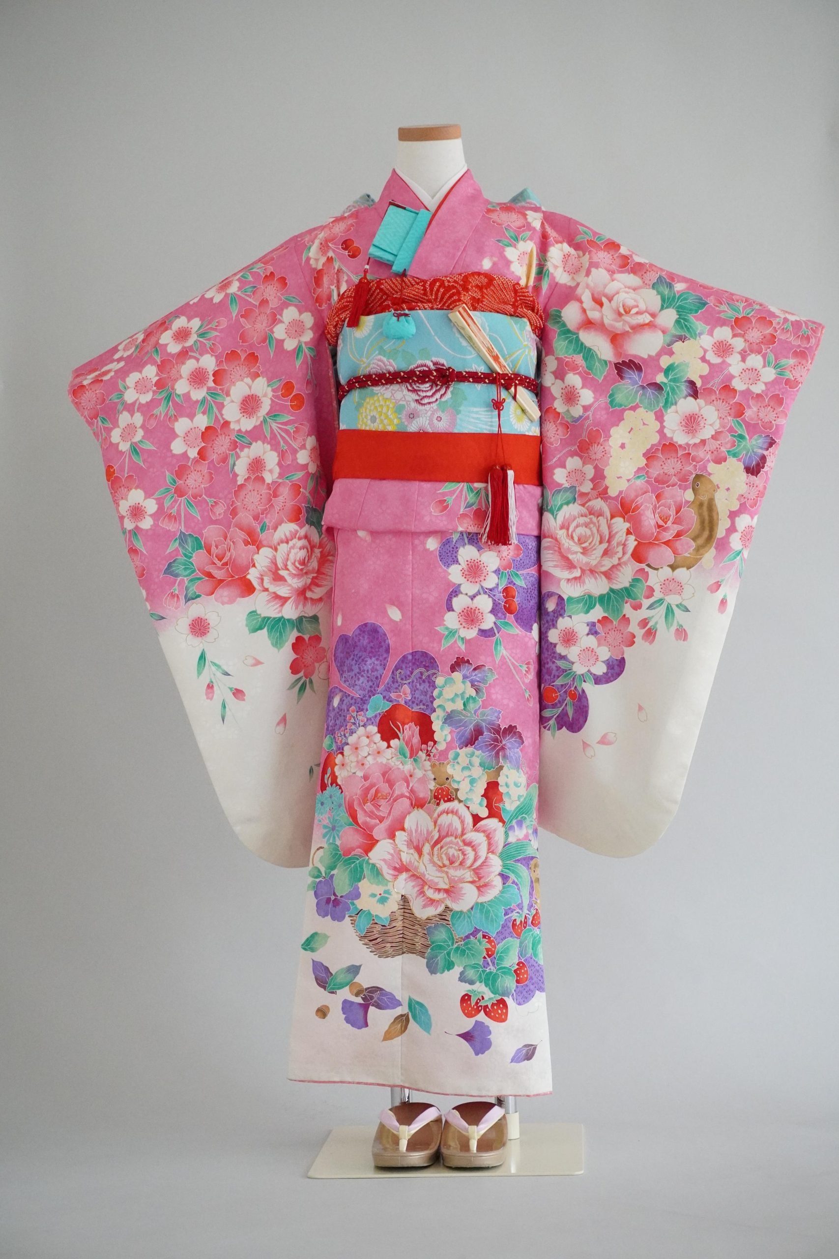 - 着物・襦袢・帯・帯締め・帯揚げ・筥迫・ビラ簪・扇子・しごき・草履・着付け小物一式