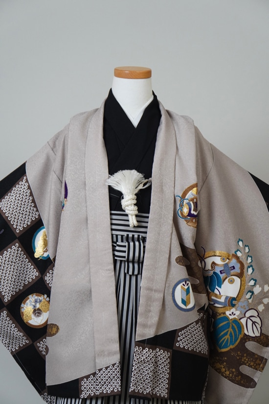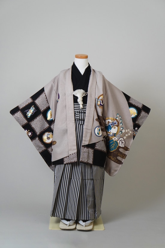 - 5歳男の子 JM631 グレー宝尽くし鹿の子市松